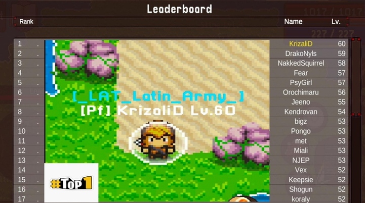 Depois de criar uma guilda dentro do jogo, a LAT - Latin Army, não demorou muito para começarmos a acumular conquistas em grupo e individuais. Vários membros alcançaram o top 50 do servidor e eu em poucas semanas de jogo alcancei o level level 59, chegando a 1ª posição do ranking global e do servidor America, porém meu reinado não foi muito longo, pois logo outro jogador da guilda me passou tendo alcançado o level 60.